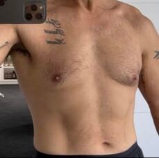 Photographs of Dr Mark 4 months apart. EMS 2x Weekly for 6 weeks, also input from Dietician and Exercise Therapist.